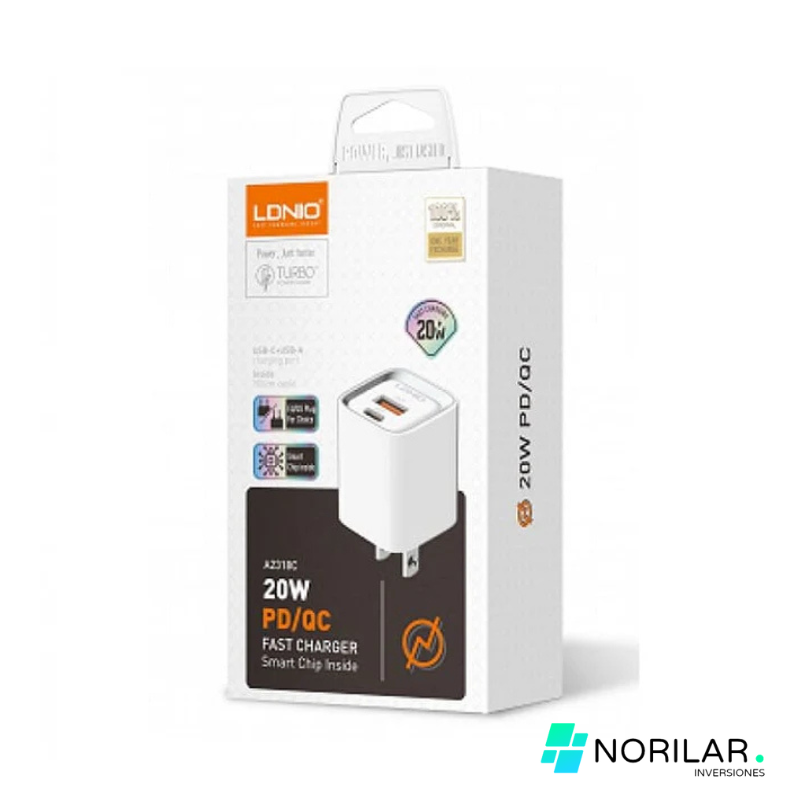 CARGADOR RAPIDO SMART 20W A2318C LDNIO CON CABLE TYPE C